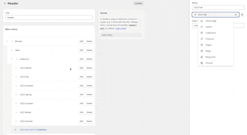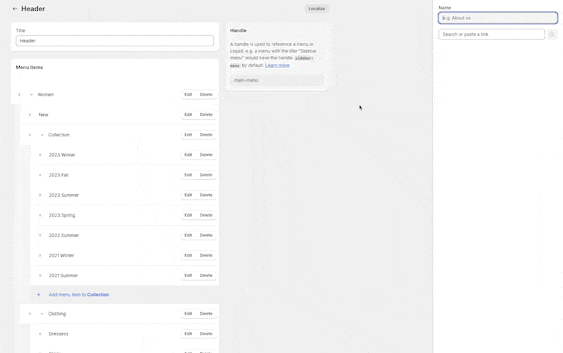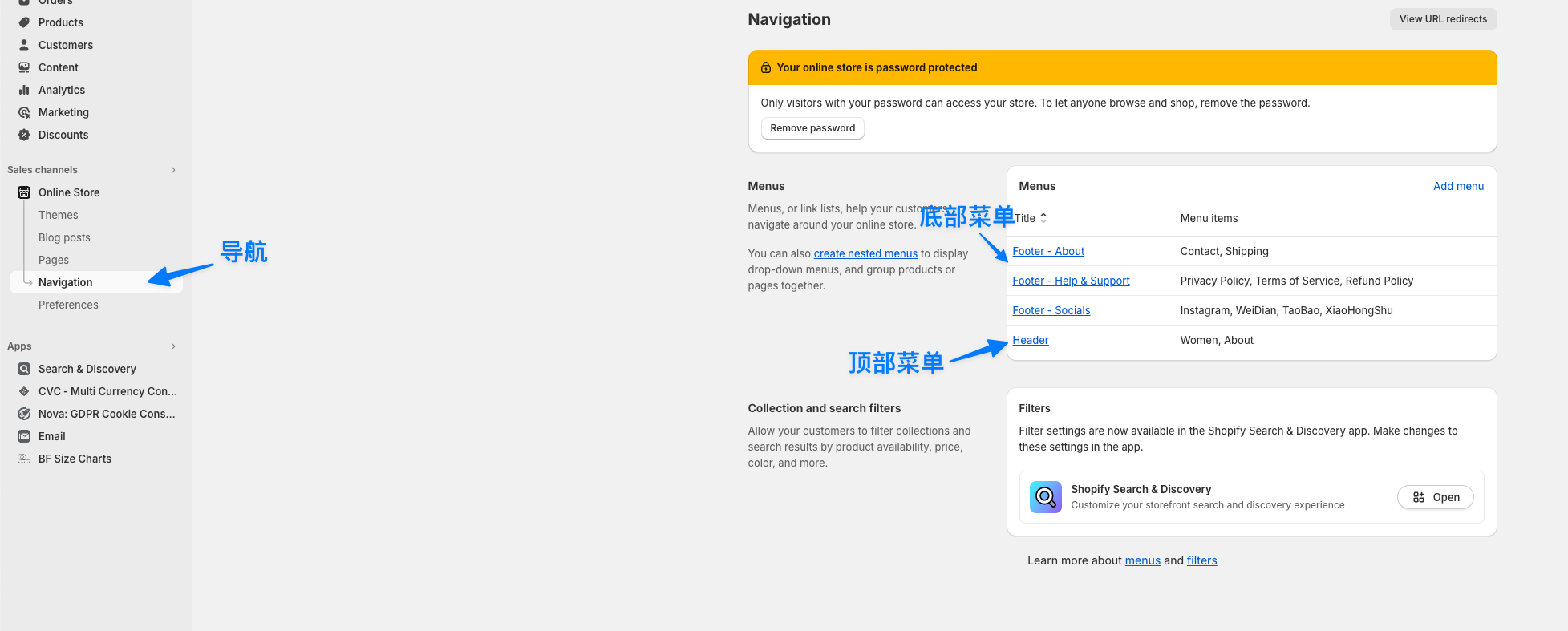 在 Shopify 中编辑导航通常涉及到更新网站的主导航菜单: