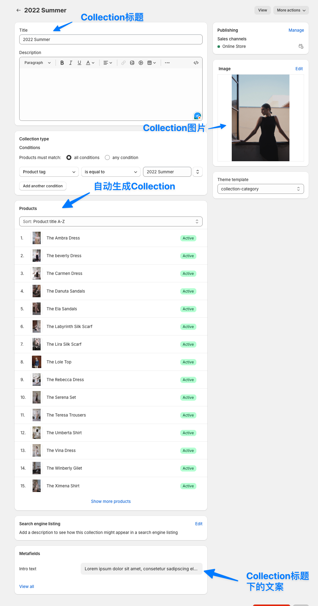 - 调整集合顺序(可选):可以在集合页面中拖动集合以调整它们的顺序,用来管理商店中的显示顺序。