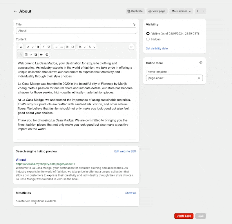 - 导航到页面管理:在 Shopify 后台,导航到“Online Shop” > “Pages”。