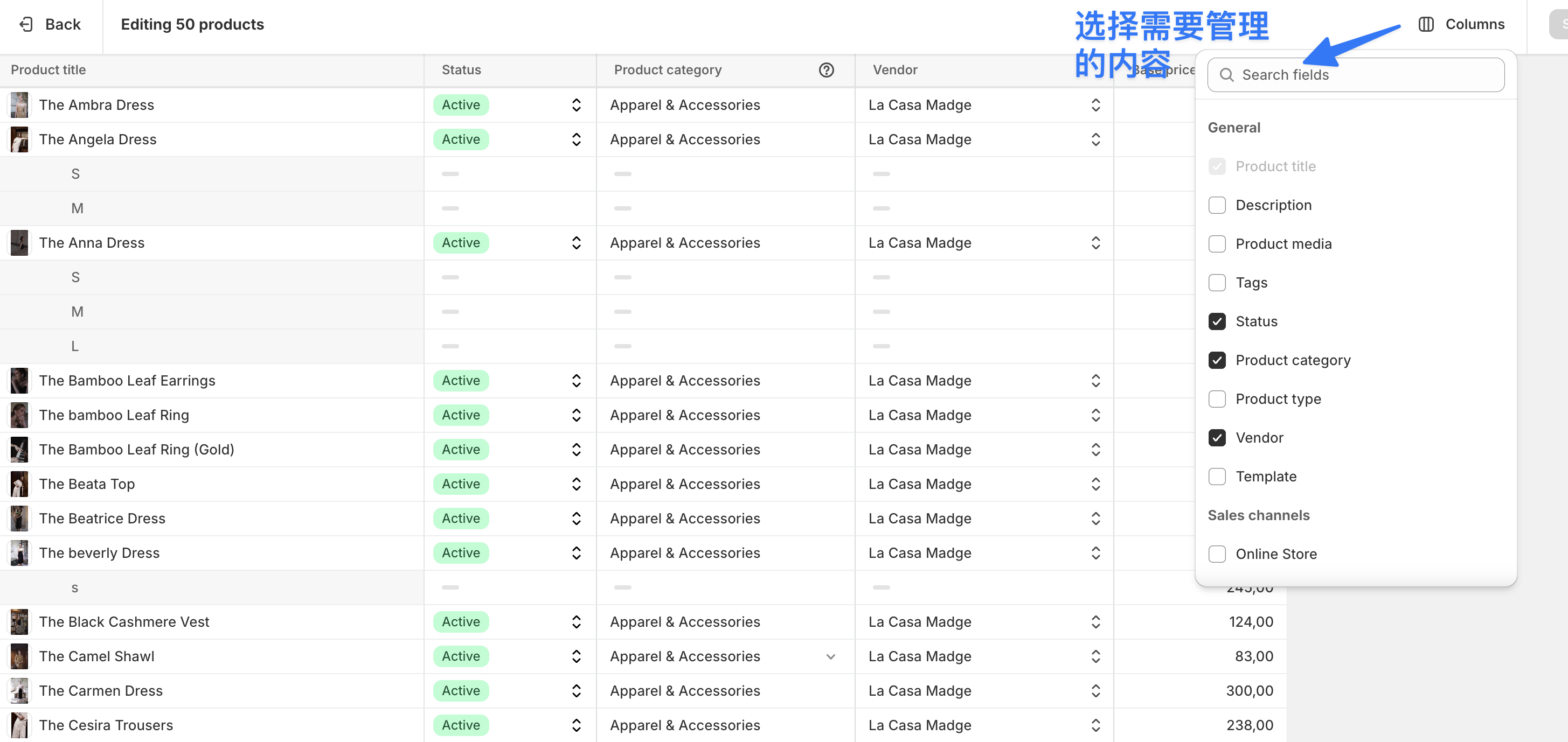 - 使用批量编辑功能,同时可以编辑多个产品的共同属性,如标题、价格、描述等。